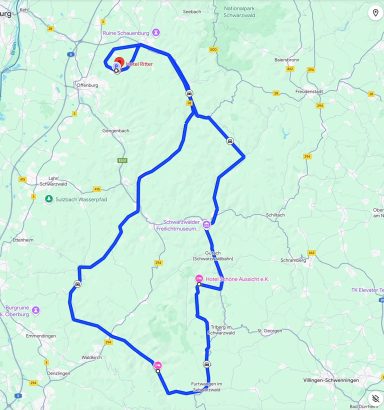 Die Ausfahrt führt durch auf abwechslungsreichen Touren durch den Schwarzwald und hält ein paar mehr oder weniger kniffeligen Fragen bereit.